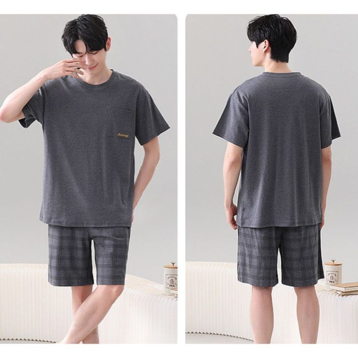 Enjoy a restful sleep and stylish loungewear with this ice silk pajama set, designed to keep you cool and comfortable with every move. Featuring a modern Korean design that combines simplicity and sophistication, this set includes a short-sleeved T-shirt and comfortable shorts with a practical fit. Perfect for summer or lounging, this set combines comfort and style in one ready-to-wear outfit.Today’s Deal is Korean Design Graphite Short Sleeve Ice Silk Pajama Set For Men