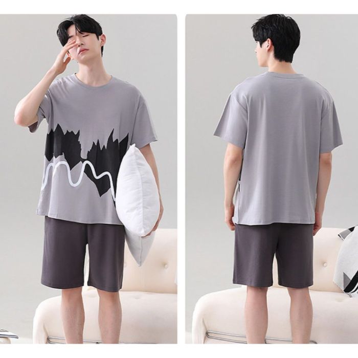 Enjoy a restful sleep and stylish loungewear with this ice silk pajama set, designed to keep you cool and comfortable with every move. Featuring a modern Korean design that combines simplicity and sophistication, this set includes a short-sleeved T-shirt and comfortable shorts with a practical fit. Perfect for summer or lounging, this set combines comfort and style in one ready-to-wear outfit.Today’s Deal is Korean Design Grey Short Sleeve Ice Silk Pajama Set For Men