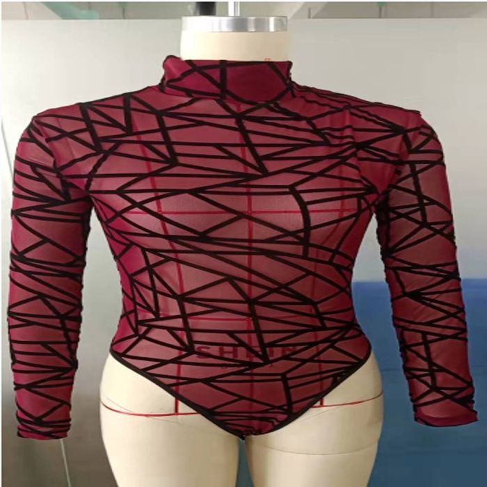 - Lace See-Through Long Sleeve Bodysuit for Women