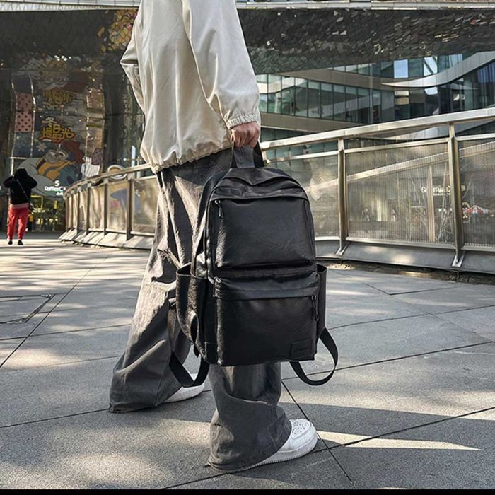 Large Capacity Leather Backpack - 44 x 31 x 12 cm