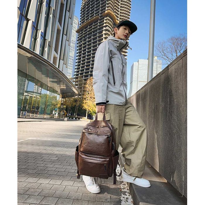- Large Capacity Leather Backpack - 44 x 31 x 12 cm