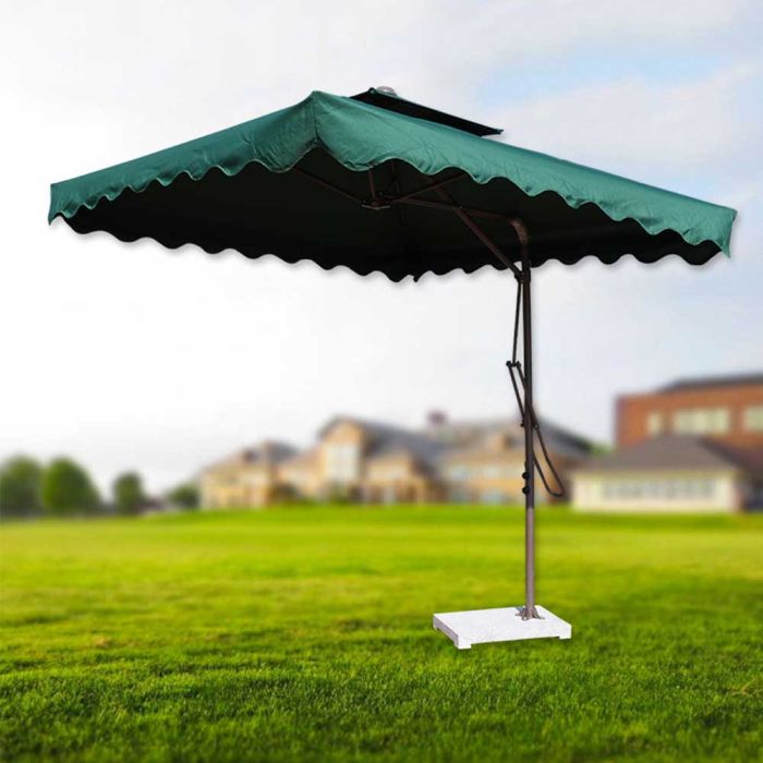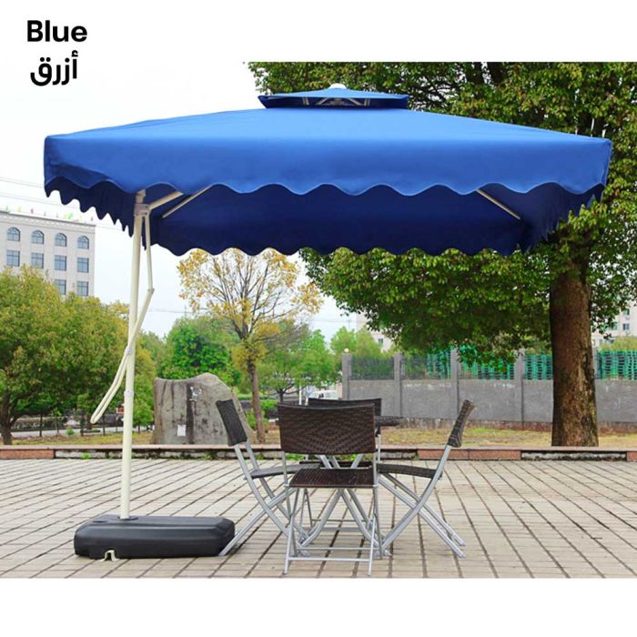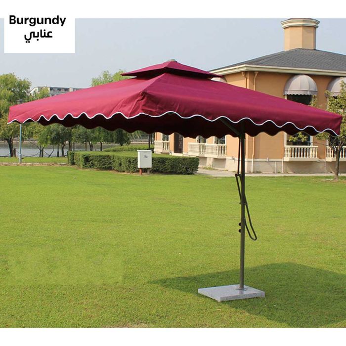 This Large Outdoor Square Umbrella is made of strong, durable materials, offering excellent sun protection, ideal for courtyards and sentry posts, featuring an elegant square design that maintains its quality and stability in all weather, and includes a marble base for total security.