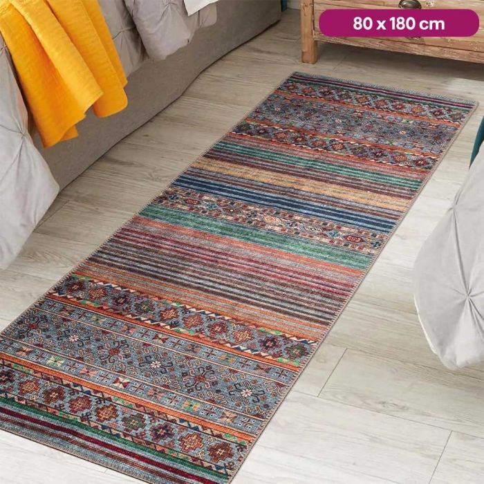 This retro pattern long thin anti-slip carpet is designed to bring both style and comfort to your home. Made from durable polyester with a soft surface, it absorbs water while protecting the floor. The non-slip dotted backing keeps it firmly in place, making it safe for corridors, kitchens, or bedrooms. Its retro printed design adds elegance, while its lightweight structure makes it easy to fold, clean, and maintain for everyday use.