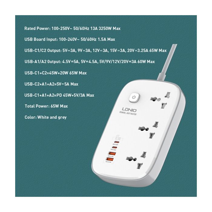 - LDNIO 3250W Multi Power Strip 3 Outlets 4 GaN USB Port