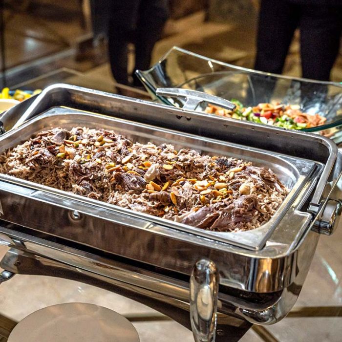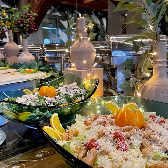 Buffet includes: salads, hot and cold appetizers, main dish, sweet, Ramadan drinks, water