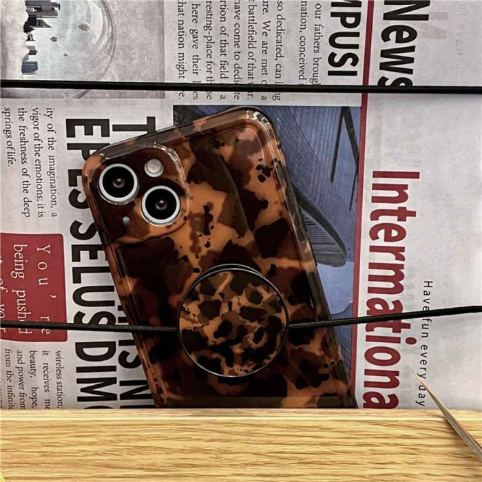 - Leopard Print Case with Stand for iPhone