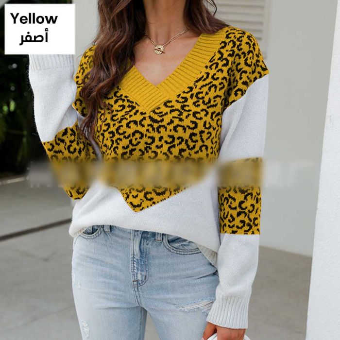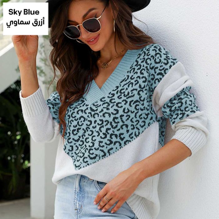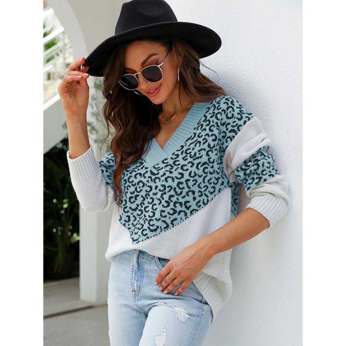 - Leopard Print Knit Top for Women