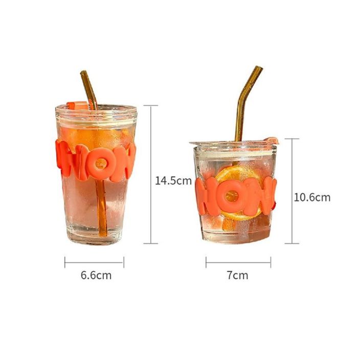 This letter printed glass cup with lid and straw is both fun and functional. The clear glass displays your drink, while the print adds style. The lid helps prevent spills and the straw makes sipping easy. Ideal for iced drinks at home, work, or on the go. Durable, reusable, and eco-friendly.