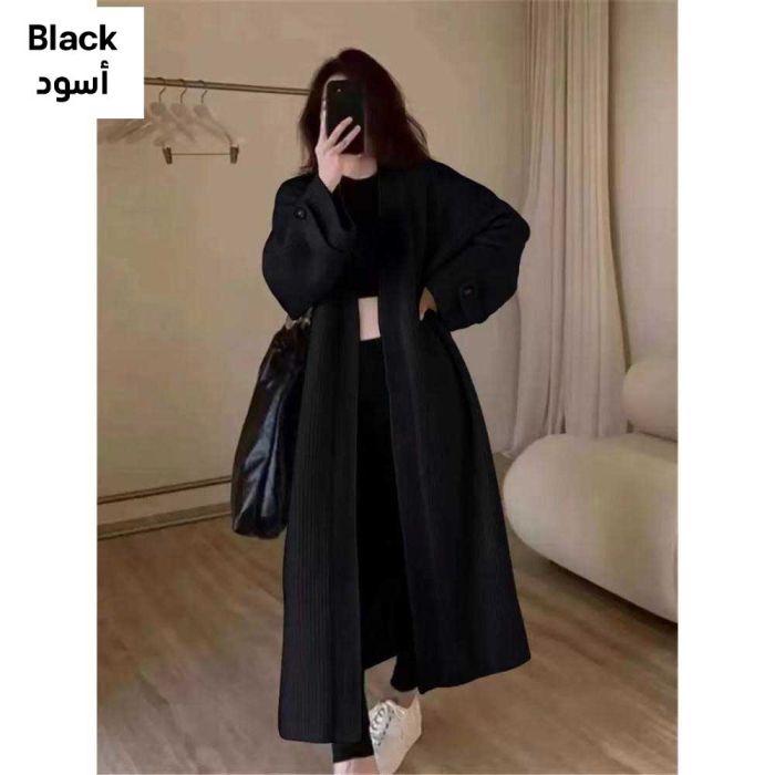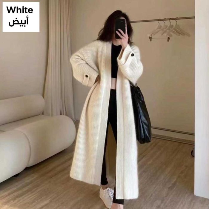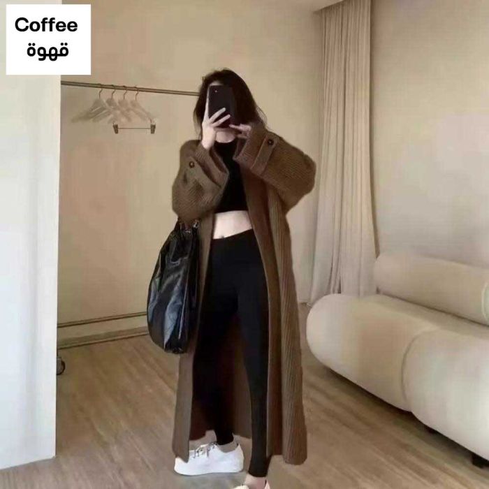 This Long knitted cardigan with a loose look for women made from a soft fabric that offers refined warmth, designed to drape smoothly for an elegant touch, enhancing your style with a modern feel ideal for daily outings and a calm, graceful presence