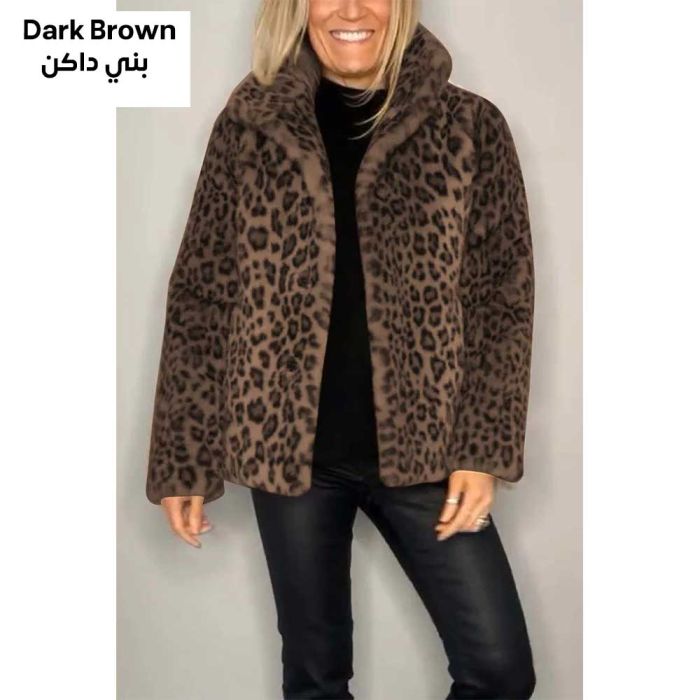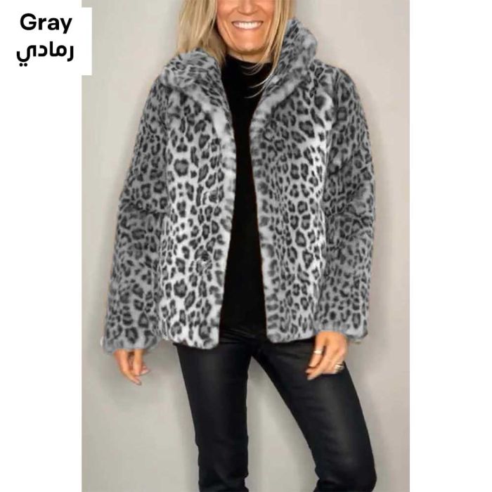 - Long Sleeves Leopard Print Fur Winter Jacket For Women