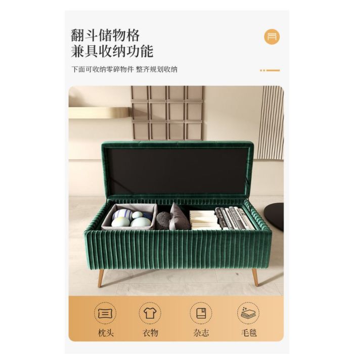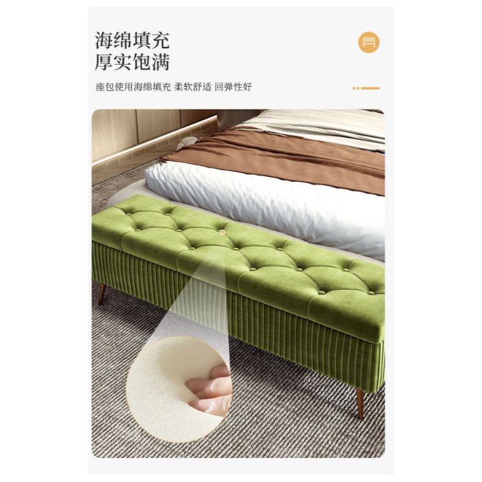 This Long Storage Shoe Changing Stool with Metal Legs made of artificial wood board, comfortable sponge padding, soft plush surface, elegant design that offers relaxed seating, organized storage space, ideal for home entryways and modern interiors
