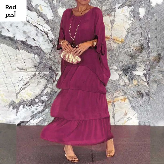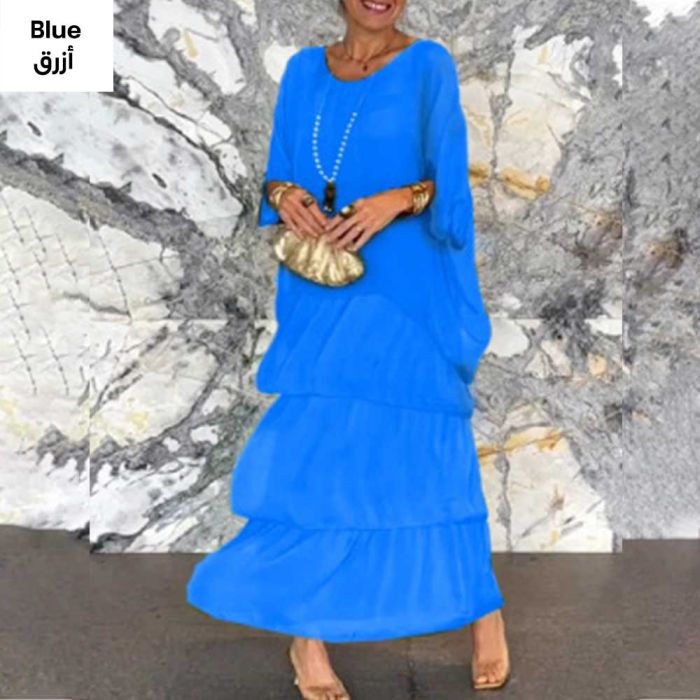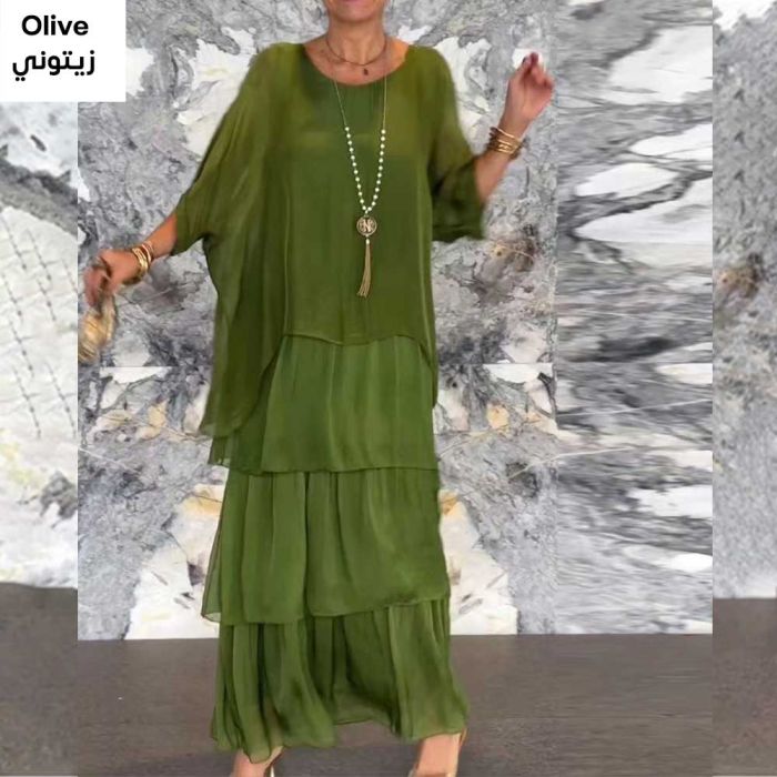 This chiffon dress is crafted from the finest fabrics to provide you with comfort and elegance for every occasion. Its loose design ensures freedom of movement and perfect ventilation, while its attractive color adds a touch of luxury and distinction to your daily look, making it the ideal choice for women seeking both elegance and comfort.