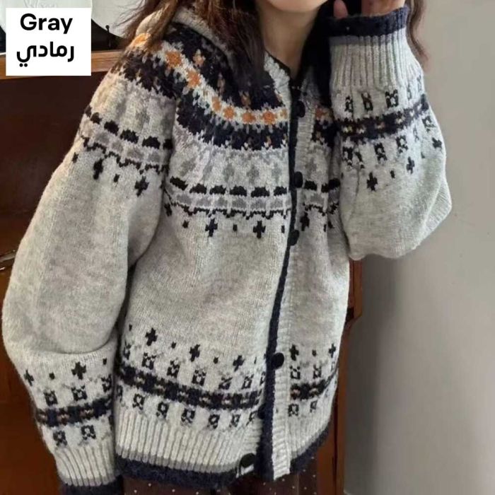 - Loose Fitting Cardigan With Long Sleeves and Hood For Women
