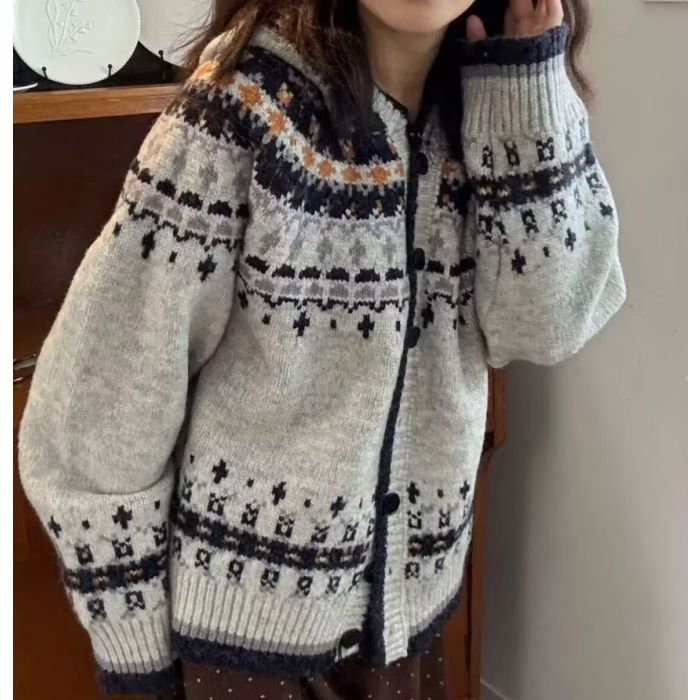 Loose Fitting Cardigan With Long Sleeves and Hood For Women