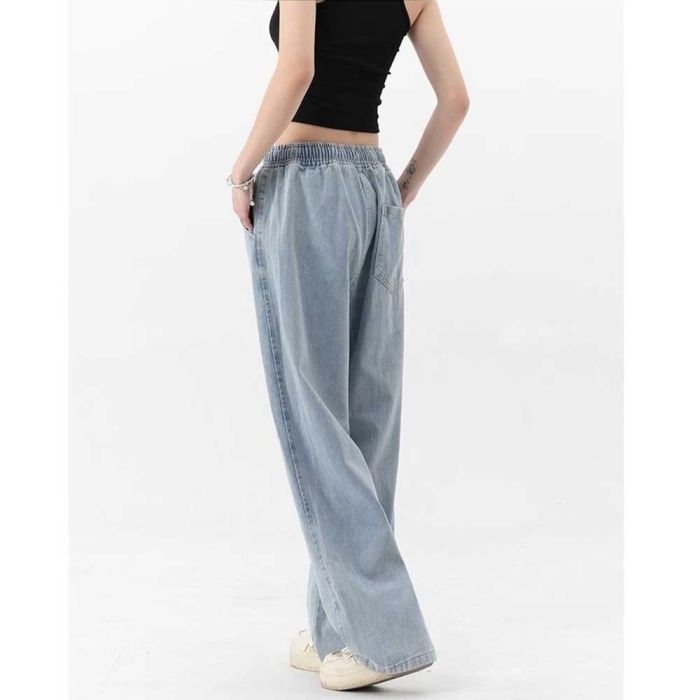 Enjoy comfort and style with these wide-leg jeans, designed to give you a modern look without compromising on comfort. They feature a flexible elastic waistband that fits various body types and provides a comfortable, secure fit all day long, while the wide leg gives you freedom of movement and a stylishly casual touch. Made from soft and durable denim, they're perfect for everyday wear, travel, or quick outings.Today’s Deal is Loose Fitting Jeans With Elastic Waist For Women