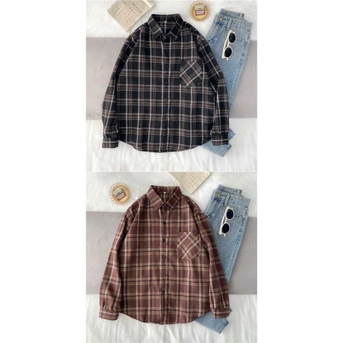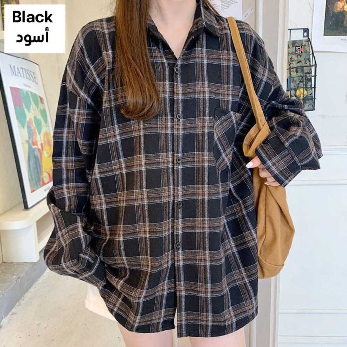 - Loose Plaid Long Sleeve Shirt for Women
