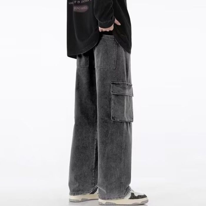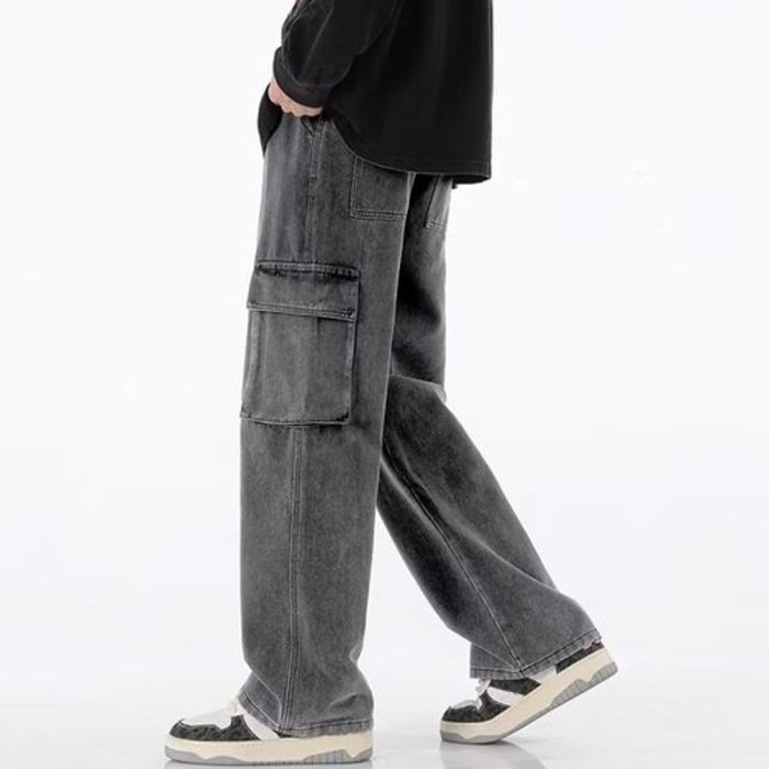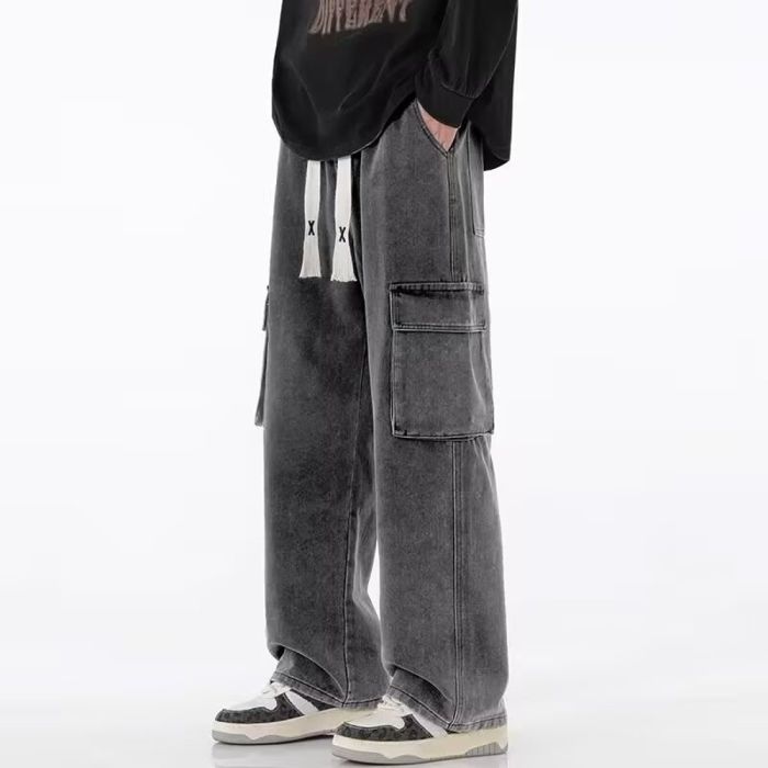 - Loose Straight Leg Denim Trousers for Men