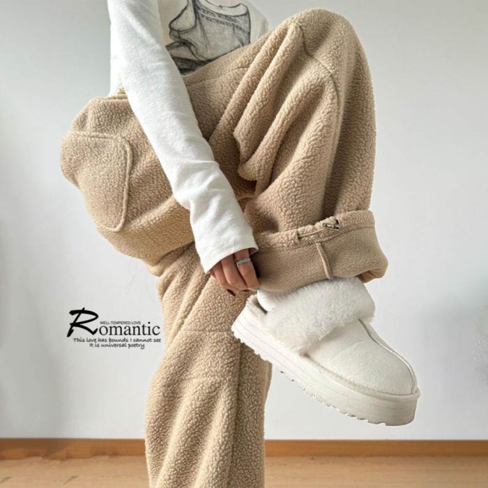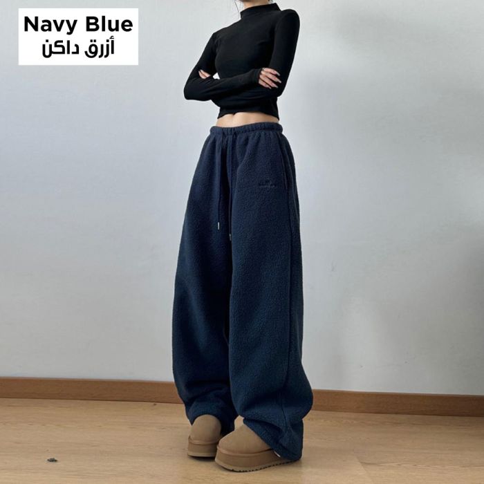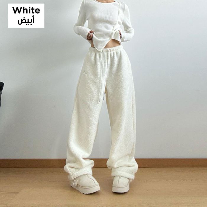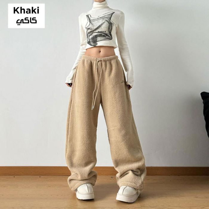 This loose winter casual trousers for women are made from a thick fabric that delivers comfortable warmth in cold weather, featuring a relaxed fit that offers easy movement and everyday elegance, with a soft texture gentle on the skin and a flexible waistband for a comfortable wear all day