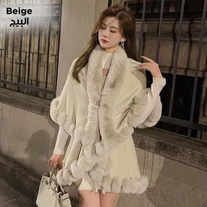 Touch of luxury and warmth to your winter look with this shawl crafted from natural wool and finished with soft fur trim. Its loose fit allows you to wear it in a variety of ways, whether around your shoulders or over a coat for a sophisticated look. Its heavy fabric provides optimal protection from the cold, while the fur detailing adds a luxurious, feminine touch.Today’s Deal is Loose Wool and Fur Shawl For Women