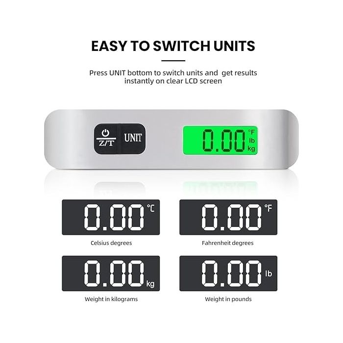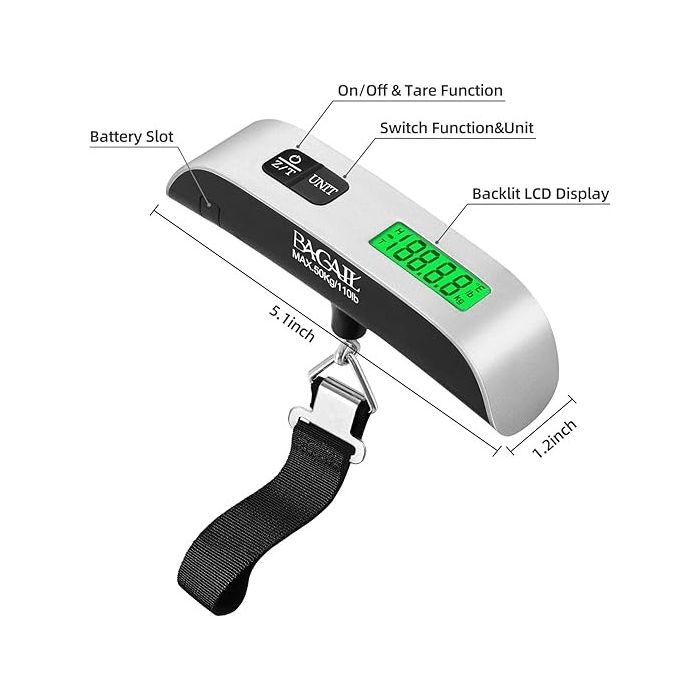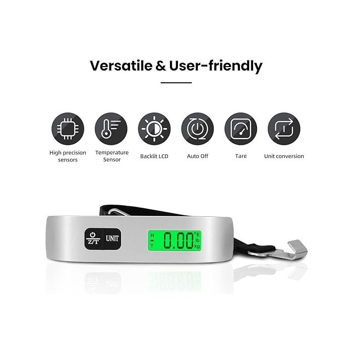 Travel with confidence and avoid excess baggage fees with a portable digital luggage scale that’s compact, accurate, and easy to use. Designed with a sturdy handle for comfortable lifting, it weighs your bags up to 50kg/110lb with high precision and 10g accuracy. Lightweight and battery-powered, it’s the perfect travel companion for trips, shopping, or outdoor adventures. Built from high-quality materials for long-lasting performance wherever you go.