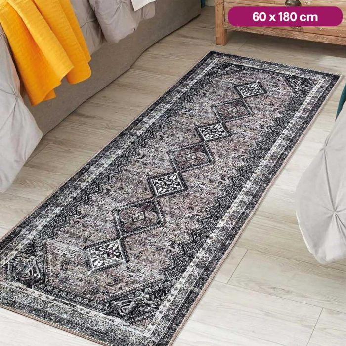 This retro pattern long thin anti-slip carpet is designed to bring both style and comfort to your home. Made from durable polyester with a soft surface, it absorbs water while protecting the floor. The non-slip dotted backing keeps it firmly in place, making it safe for corridors, kitchens, or bedrooms. Its retro printed design adds elegance, while its lightweight structure makes it easy to fold, clean, and maintain for everyday use.