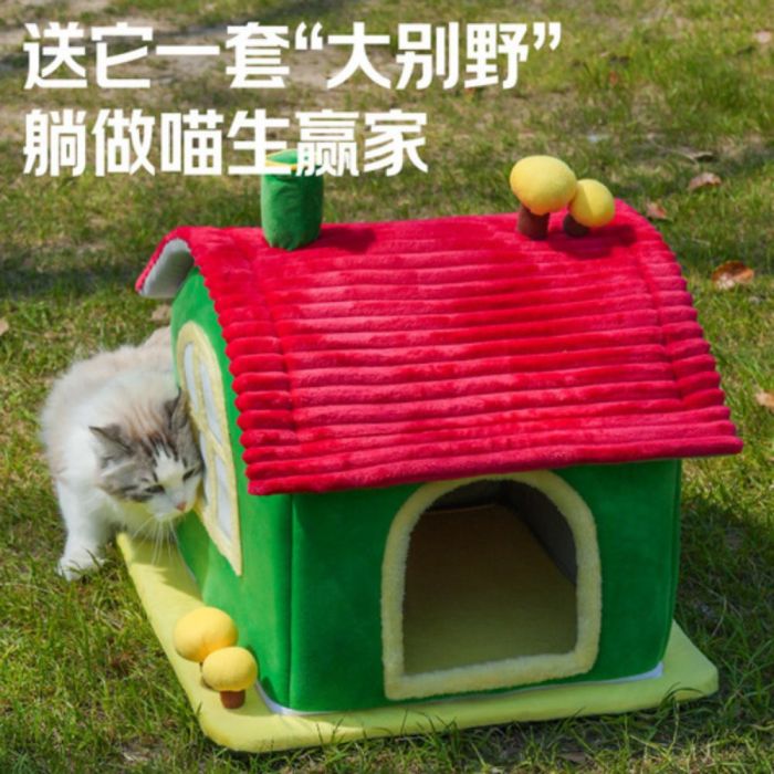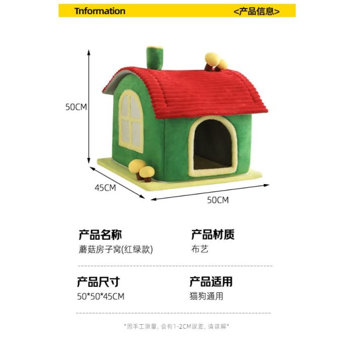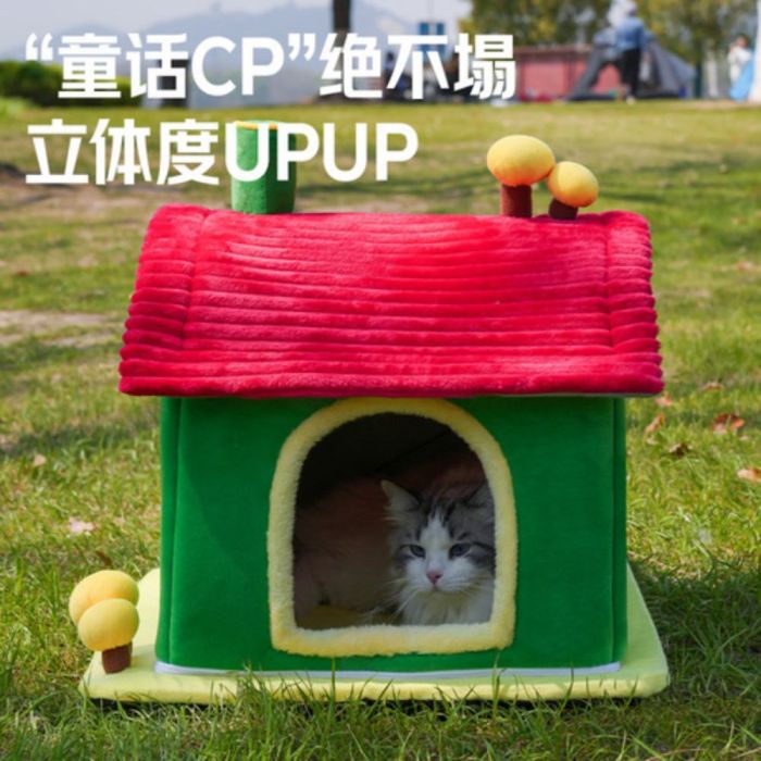 This Luxury enclosed cat house mushroom design made from soft comfortable materials, provides a warm secure resting space for cats, semi enclosed design enhances privacy, stable base maintains its quality, ideal for year round use