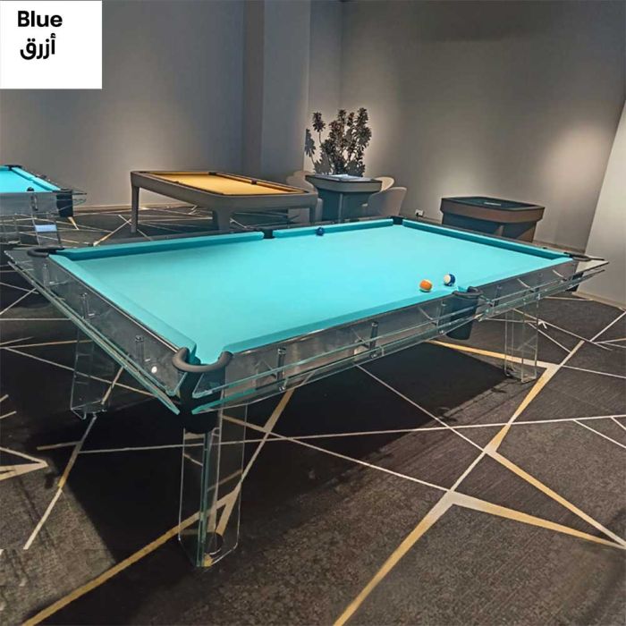This luxury glass pool table is crafted from high-transparency tempered glass for an elegant appearance, featuring a professional playing surface that ensures excellent stability and ideal rebound. Its modern design blends seamlessly with premium home and club interiors, offering an exceptional playing experience that unites beauty and durability.