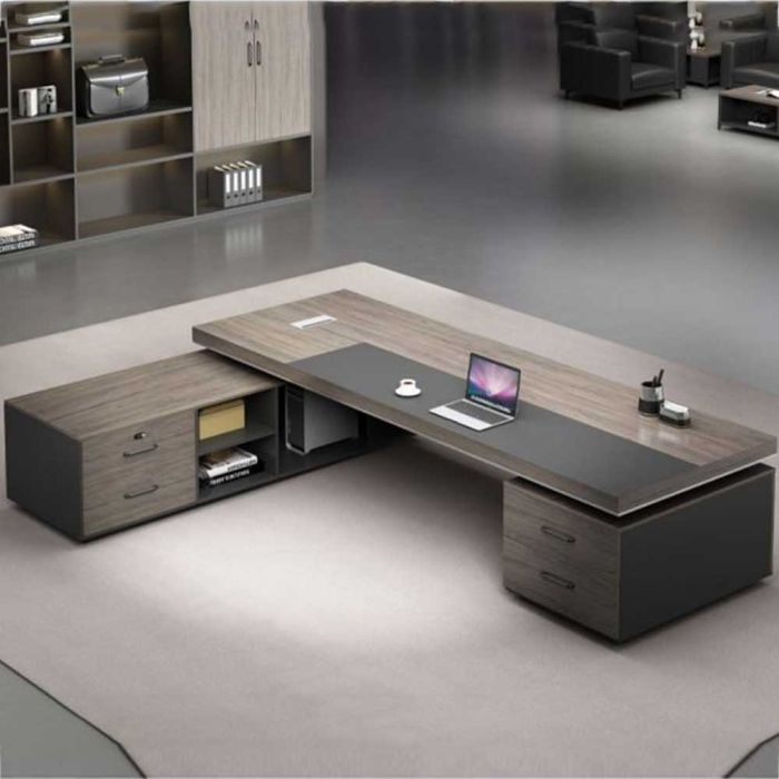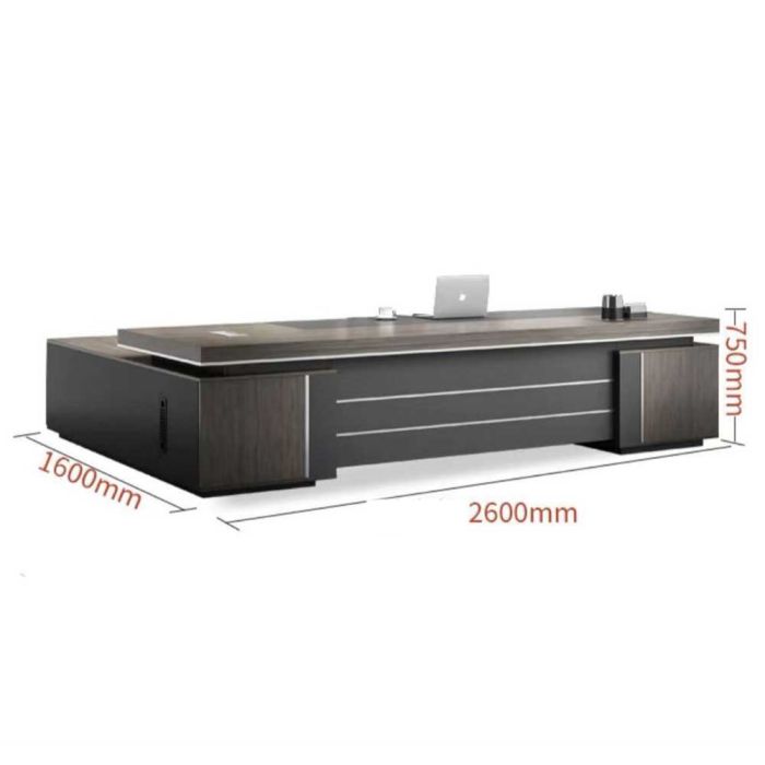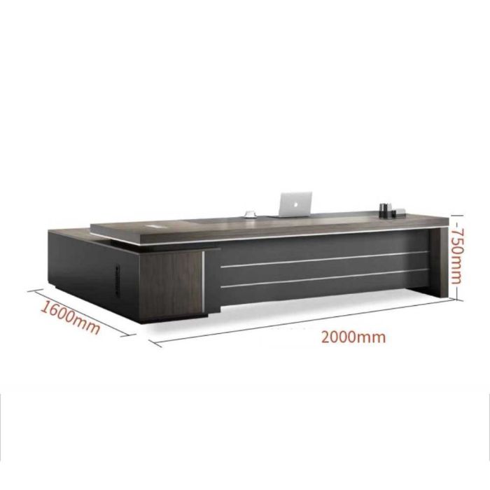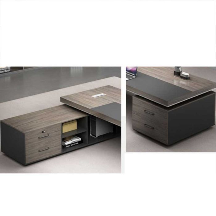 This Luxury double office table with a side unit in particle wood, elegant executive design, offers a spacious work surface and comfortable organization for files and devices, suitable for managerial offices and daily use