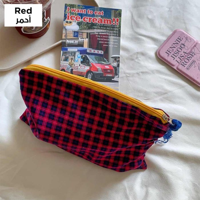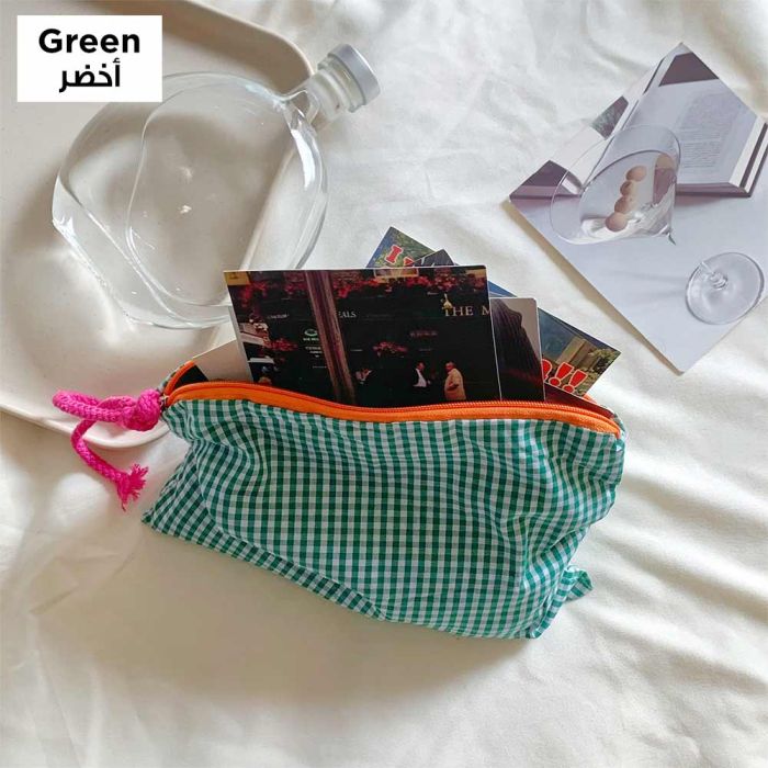 Luxury Women's Grid Makeup Storage Bag - 18 × 22 cm