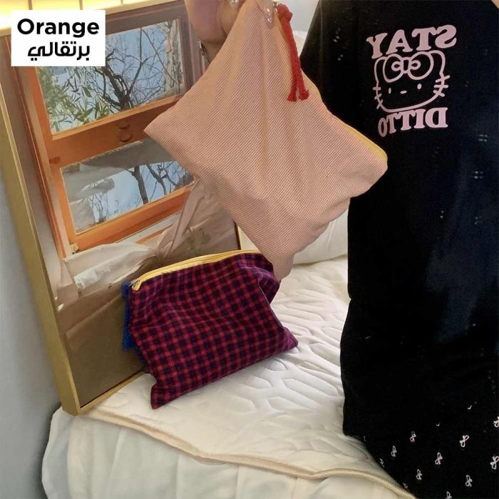 - Luxury Women's Grid Makeup Storage Bag - 18 × 22 cm