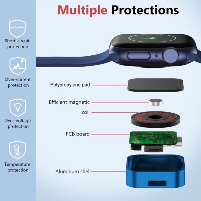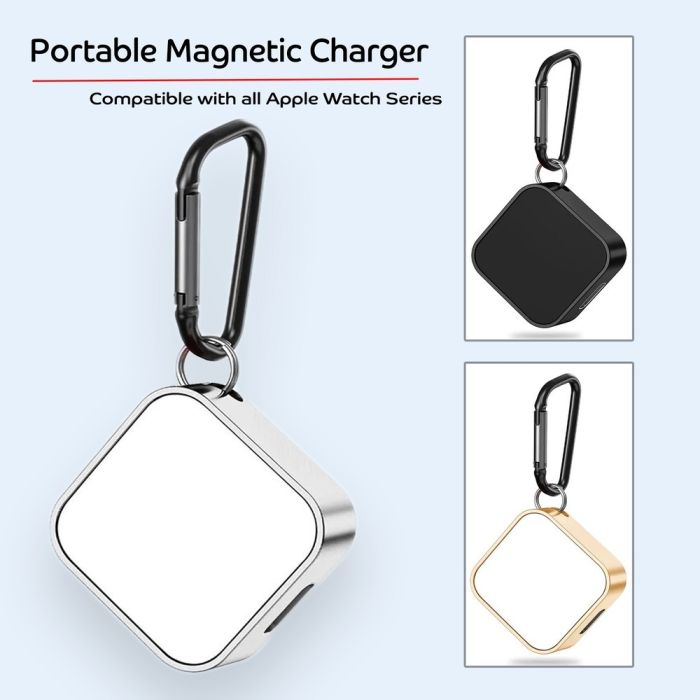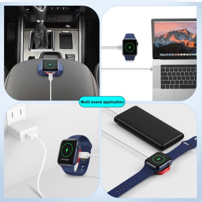 The compact magnetic iWatch charger ensures fast and safe charging thanks to its strong magnetic force and Lightning and USB Type-C ports. Its small design makes it ideal for on-the-go use, and it supports all iWatch models for a convenient and continuous charging experience.