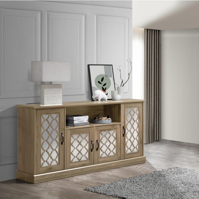 Today's Deal is Malaysian Wooden Buffet with Mirrored Doors 4 Doors