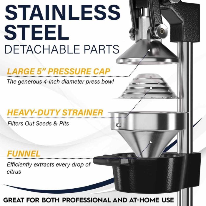 Bring real pressing power to your countertop with a manual juicer built for a stronger, cleaner extraction experience. Its professional lever-action design helps turn oranges, lemons, and pomegranates into fresh juice with less effort, while the stable base and ergonomic handle give you better control during every press. The black and silver finish adds a sharp, practical look that fits neatly into everyday kitchen use.