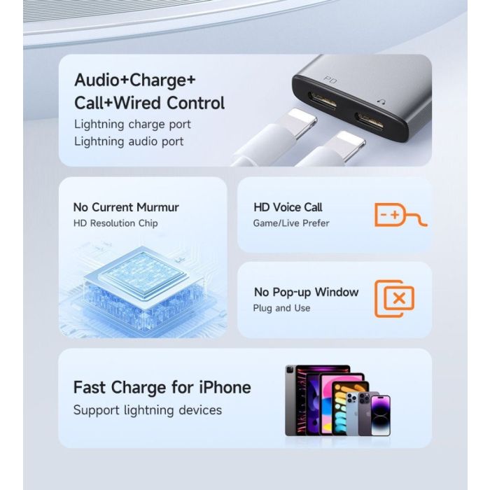- Mcdodo 2-in-1 Lightning to Dual Lightning Audio Adapter Cable
