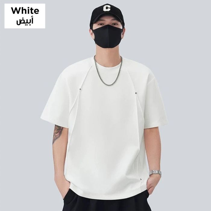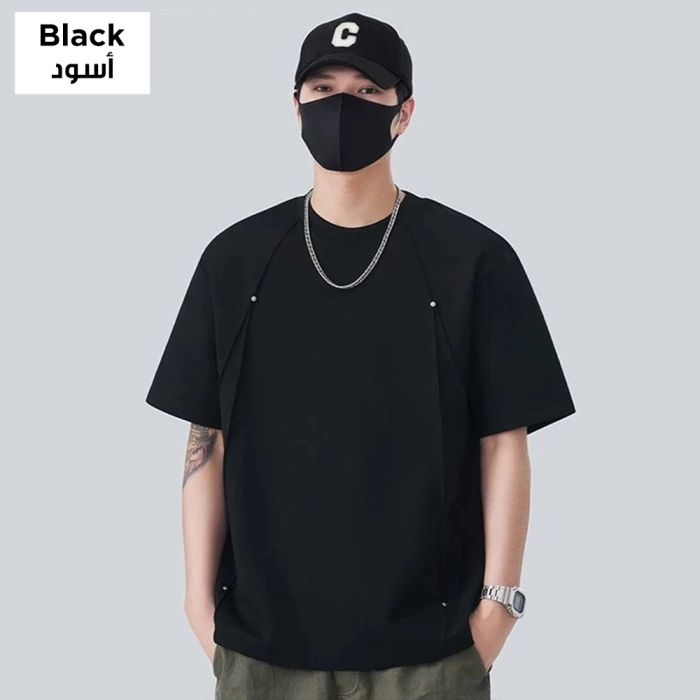 This T-shirt features a unique design combining prominent 3D pleats that add a bold and modern touch. Made from high-quality cotton, it offers softness and comfort all day long. Its relaxed fit allows for freedom of movement and a comfortable, modern look.Today's Deal is Men’s 3D Pleated Rivet Casual T-Shirt