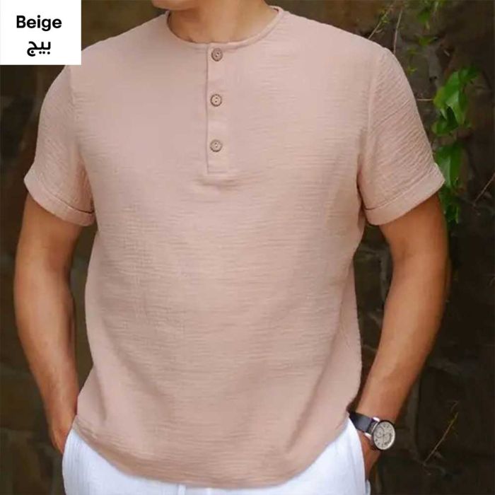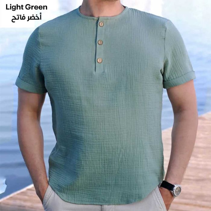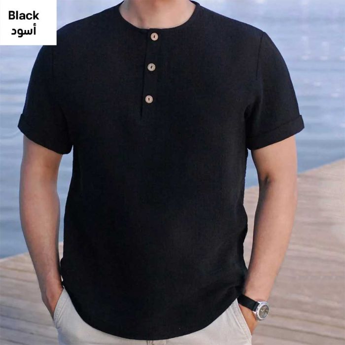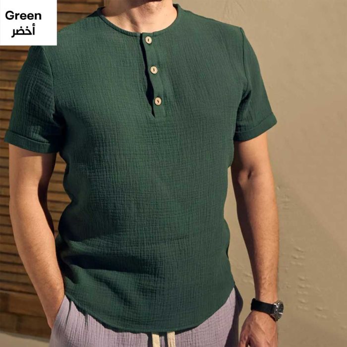 This stylish casual Henley shirt for men is crafted from high-quality fabric, offering perfect comfort throughout the day. It features a modern design with buttons that add a touch of elegance and distinction. Suitable for all occasions, whether formal or informal, it is the ideal choice for the modern man seeking both elegance and comfort, ensuring he maintains a chic and refreshed appearance every time he wears it.