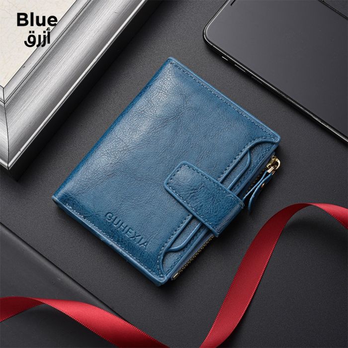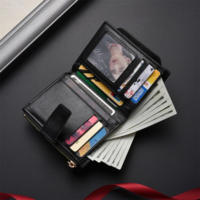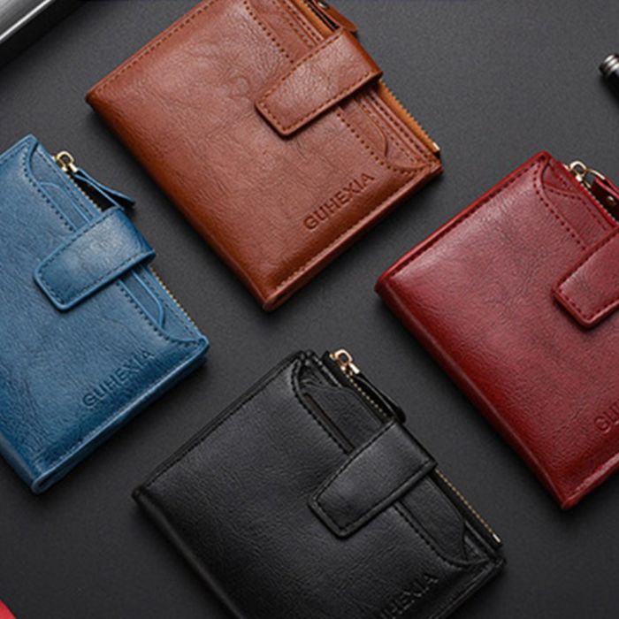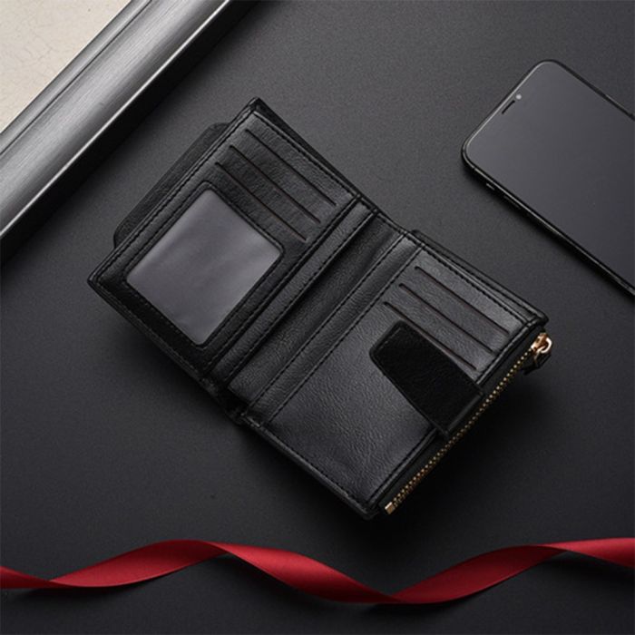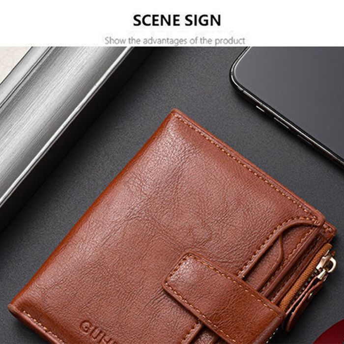 Short men's wallet with a classic elegant leather design, featuring multiple slots for cards and cash. Combines simplicity and sophistication, ideal for everyday use or as a stylish gift.