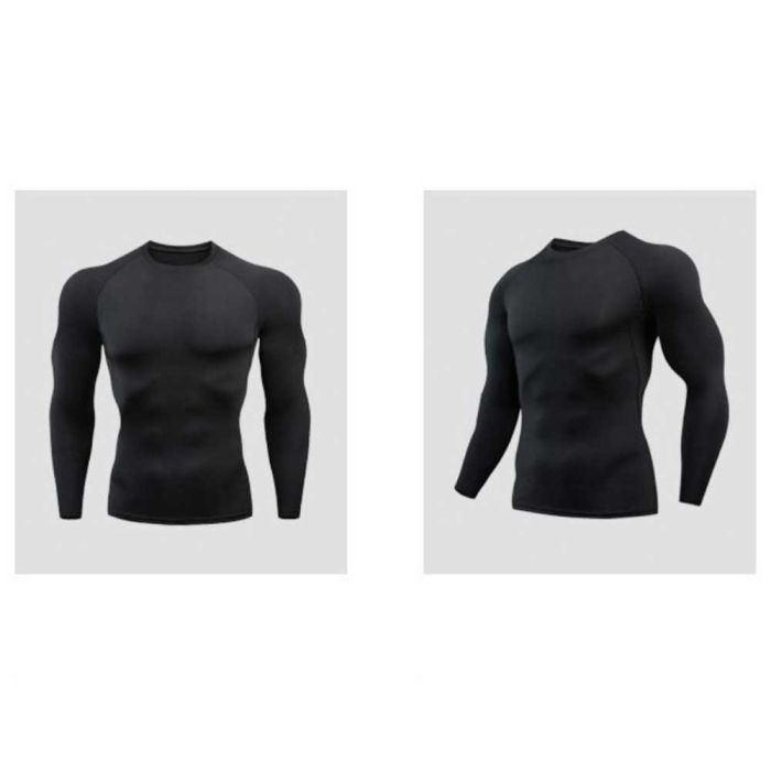 This Men's long-sleeve compression fitness shirt made from flexible and comfortable fabric, provides ideal body support during workouts, features excellent breathability and quick-dry performance, perfect for running and intense training, and maintains its quality after repeated use.