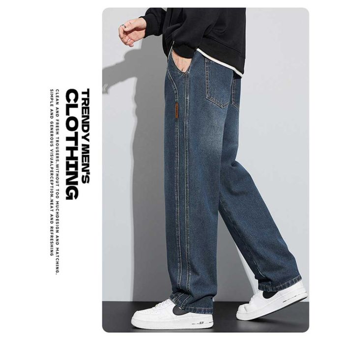 This Men's Trendy Jeans Made of Heavyweight Denim with a Loose, Straight-leg American Fit, Reflecting a Modern and Stylish Street Style. They Offer a Relaxed Fit That Allows Complete Freedom of Movement and Are Suitable for Everyday Casual Looks. They Are Durable and of High Quality, Ensuring a Long-lasting Piece. Ideal for Spring and Fall Wear, They Add a Bold, Modern Touch to a Young Man's Wardrobe.