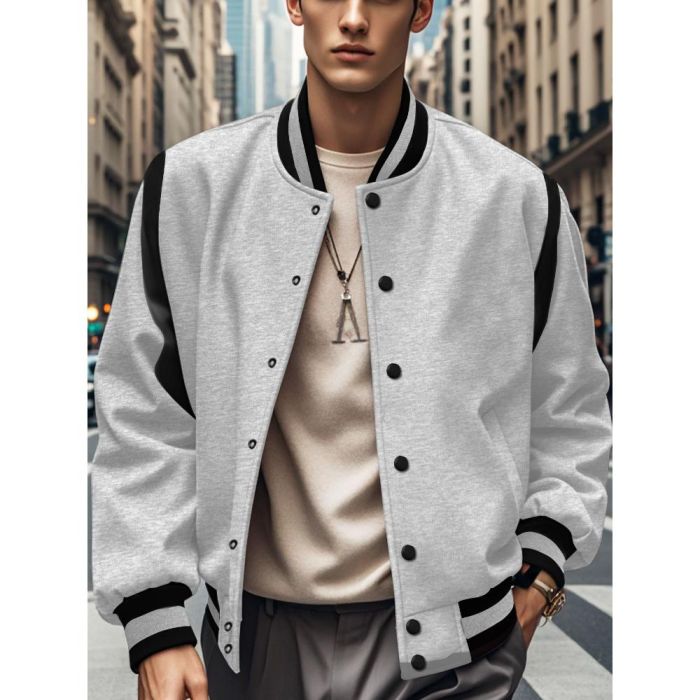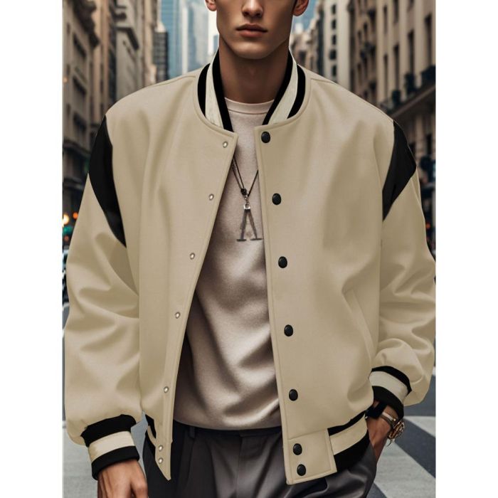 This Men's Trendy Baseball Jacket made from soft synthetic fibers that deliver an elegant look and comfortable feel, a modern sporty-inspired design suitable for everyday outfits, adding a standout presence and a balanced sense of style