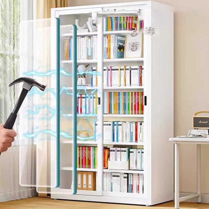 This Metal Cabinet 7 Layers with Glass Doors made of a metal structure with transparent glass doors, gives you an organized display for your items, helps you arrange space elegantly, and adds a modern refined touch to the area