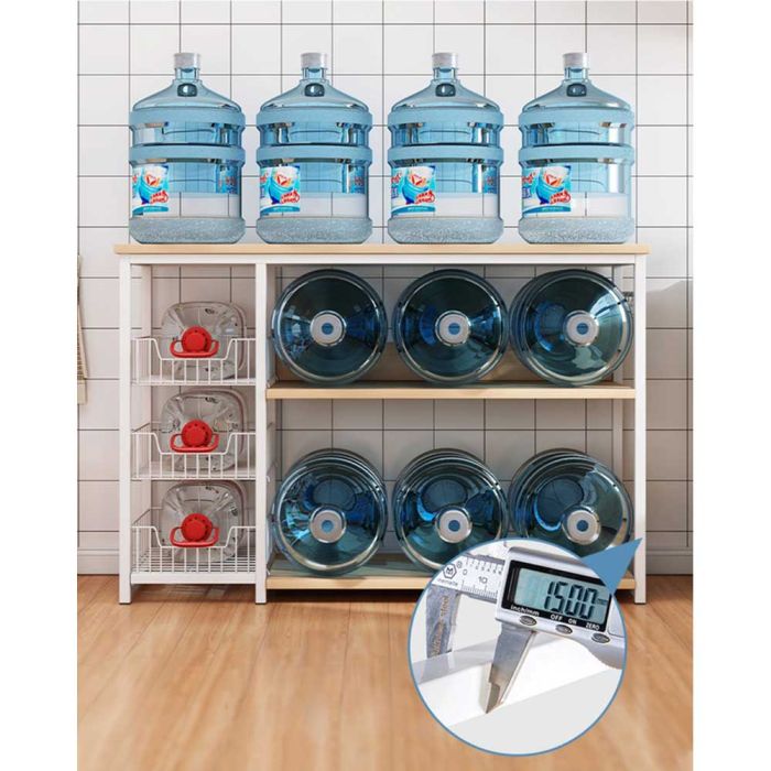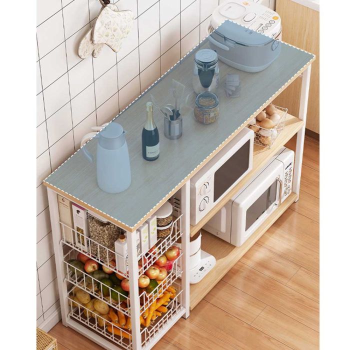 This Multi Layer Metal Kitchen Organizer made of a wooden top and metal frame, gives you an organized space for food preparation and appliance placement, helps you reach your items quickly, and adds a neat elegant touch that makes your kitchen more comfortable