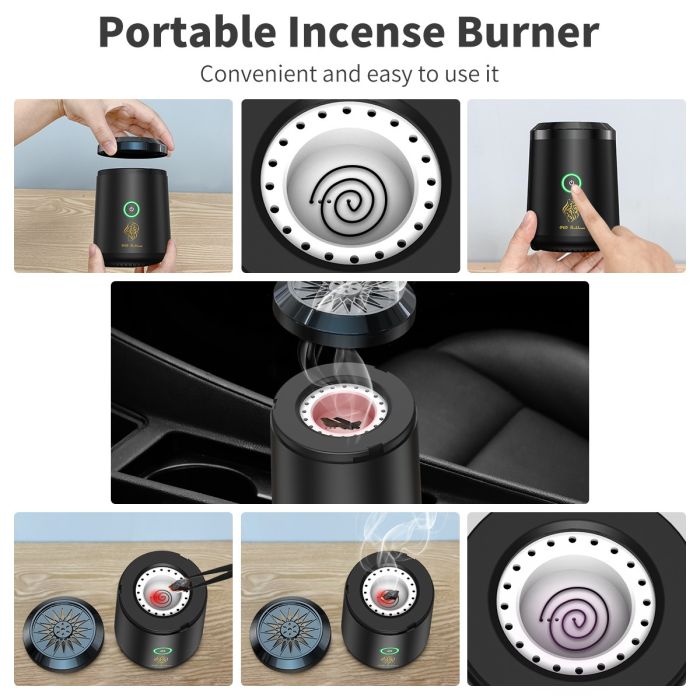 Enjoy the aroma of oud and traditional incense in a modern way with this mini electric incense burner. Its smart heating technology ensures a strong and long-lasting fragrance release without the need for charcoal. Its compact design makes it ideal for use in the car, home, office, or while traveling. It's USB rechargeable for convenient use anywhere and features a smart chip for safe and efficient temperature control.
