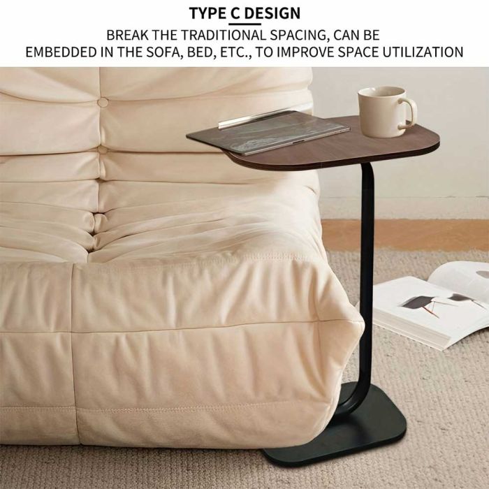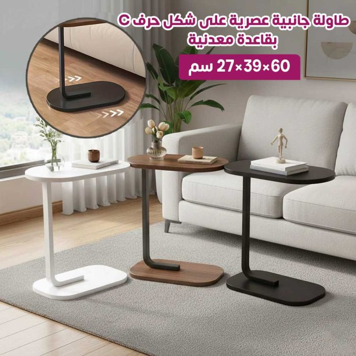 - Modern C Shaped Side Table with Metal Base