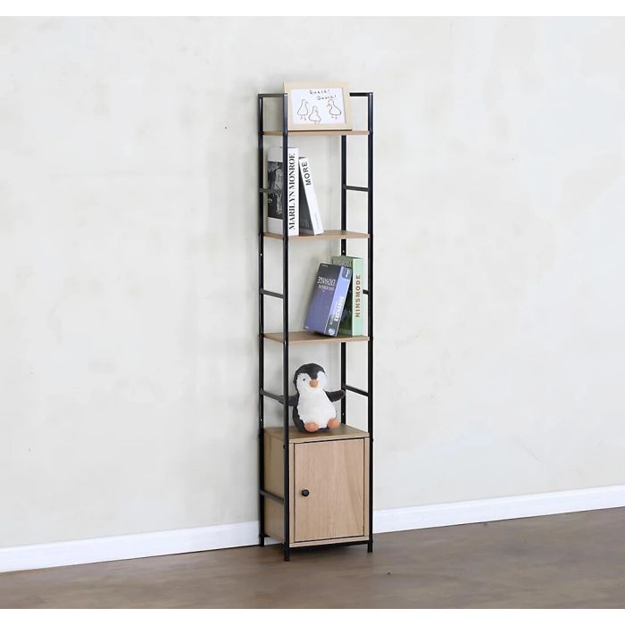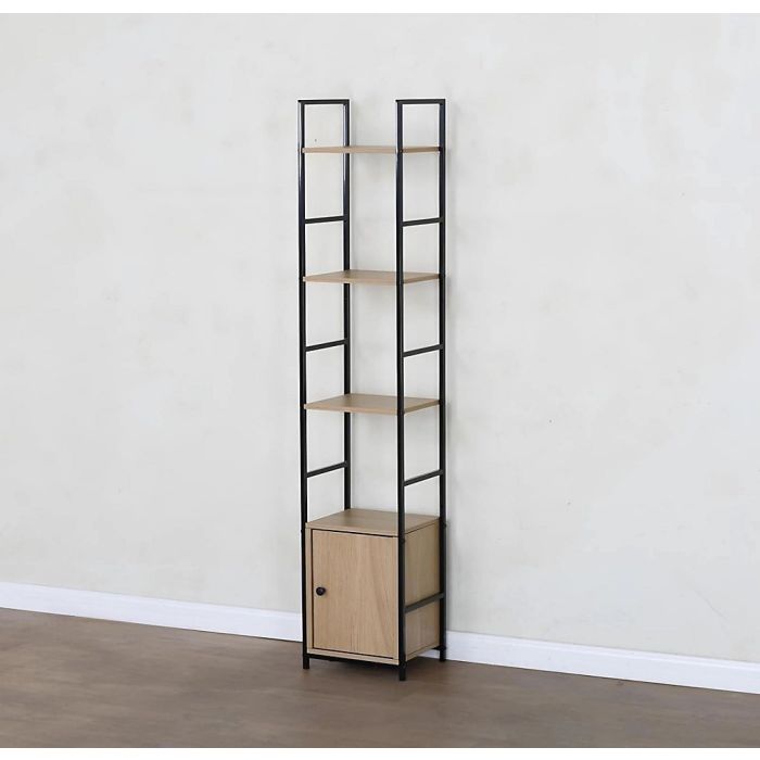 Add a touch of modern charm and practical storage to your living space with this stylish Tall Narrow Shelving Unit. Crafted from durable particle board with a melamine finish and supported by a sleek black steel frame with an electric coating
