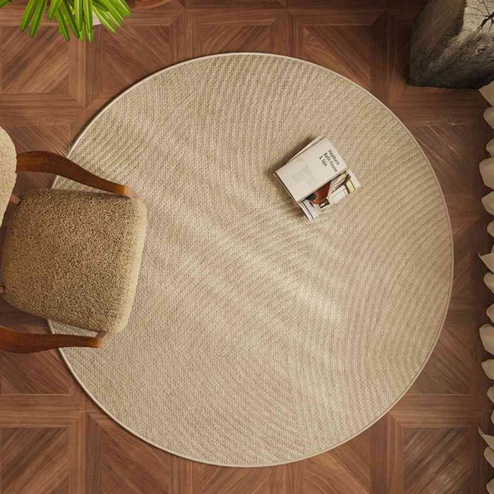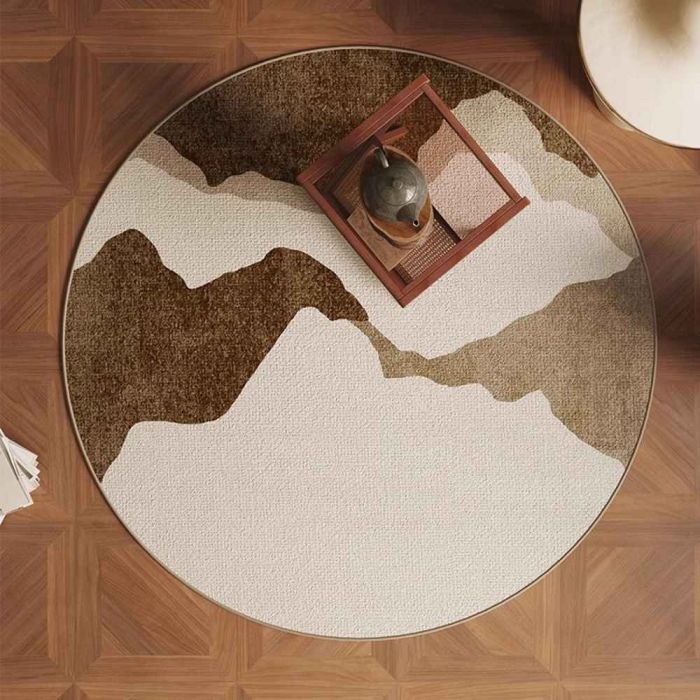 This modern round rug is made from comfortable materials, features a simple design that blends with contemporary decor, ideal for living rooms or calm corners for a cozy feel