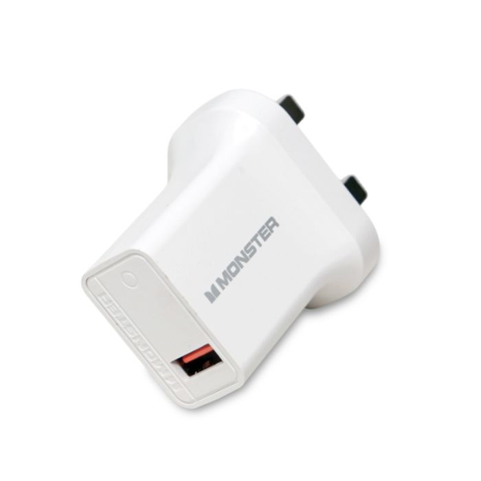 - Monster 12W Fast Charger Adptor with USB to Lightning Cable