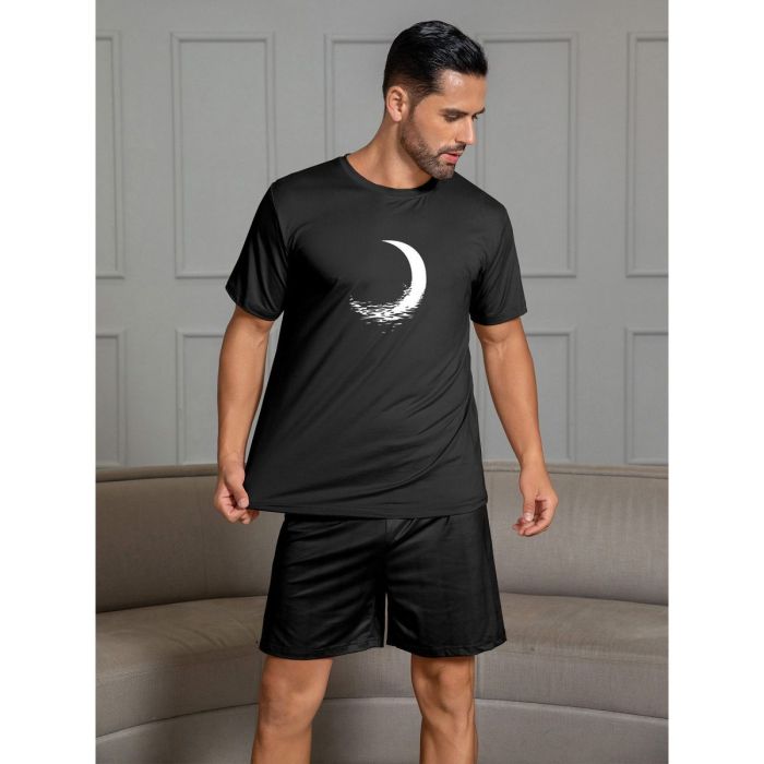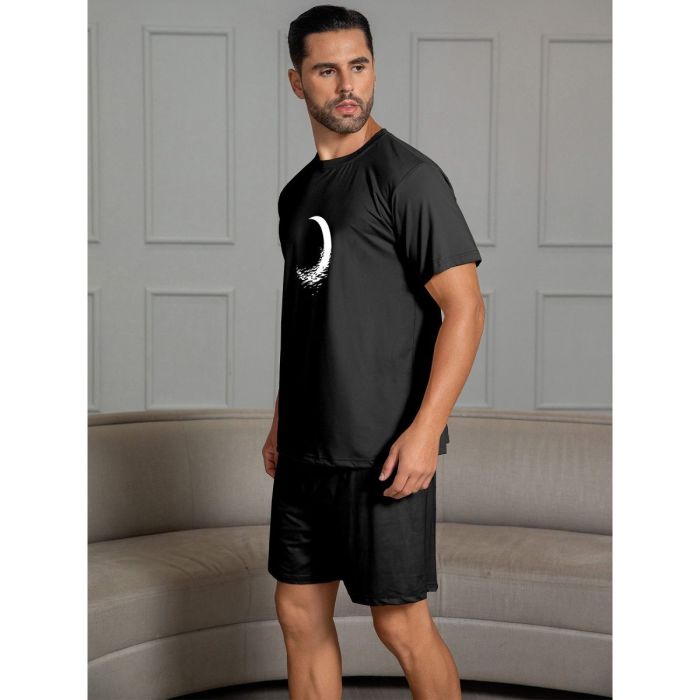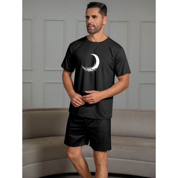 - Moon Light Design Short Sleeves Pajama Set For Men