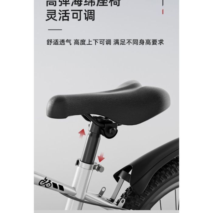 - Front suspension fork for more comfortable riding