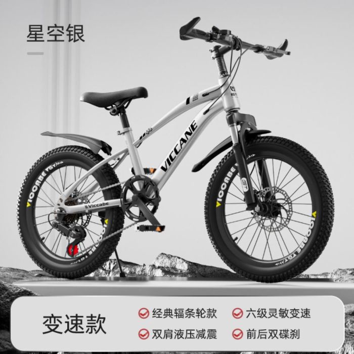 This Mountain bike for kids with front suspension and 6 speeds, built with a durable frame, lightweight and easy-to-control design, smooth gear system for comfortable riding, suitable for learning, play, and everyday outdoor riding